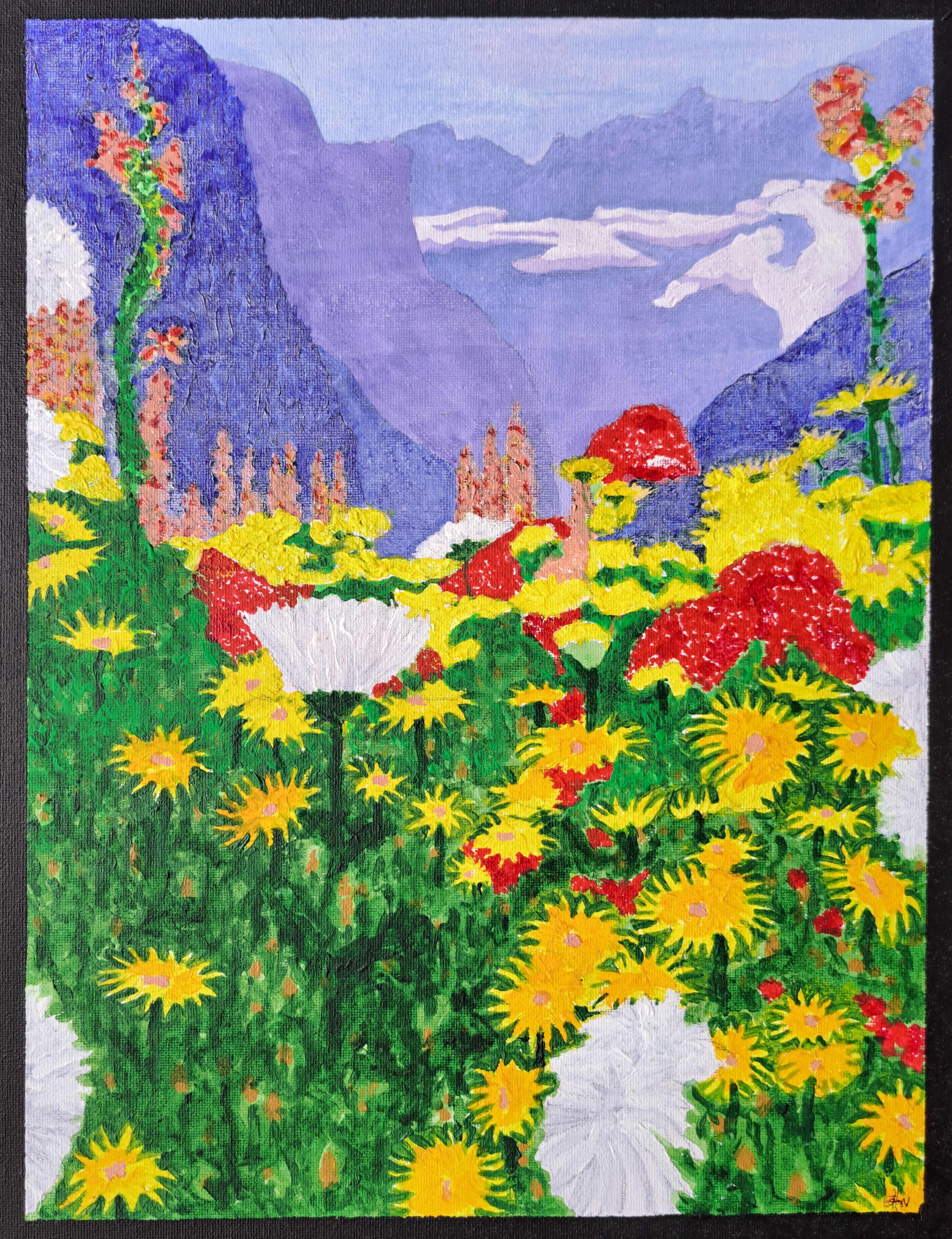 Very bright and cheerful and I am happy with it even though flowers aren’t my thing.