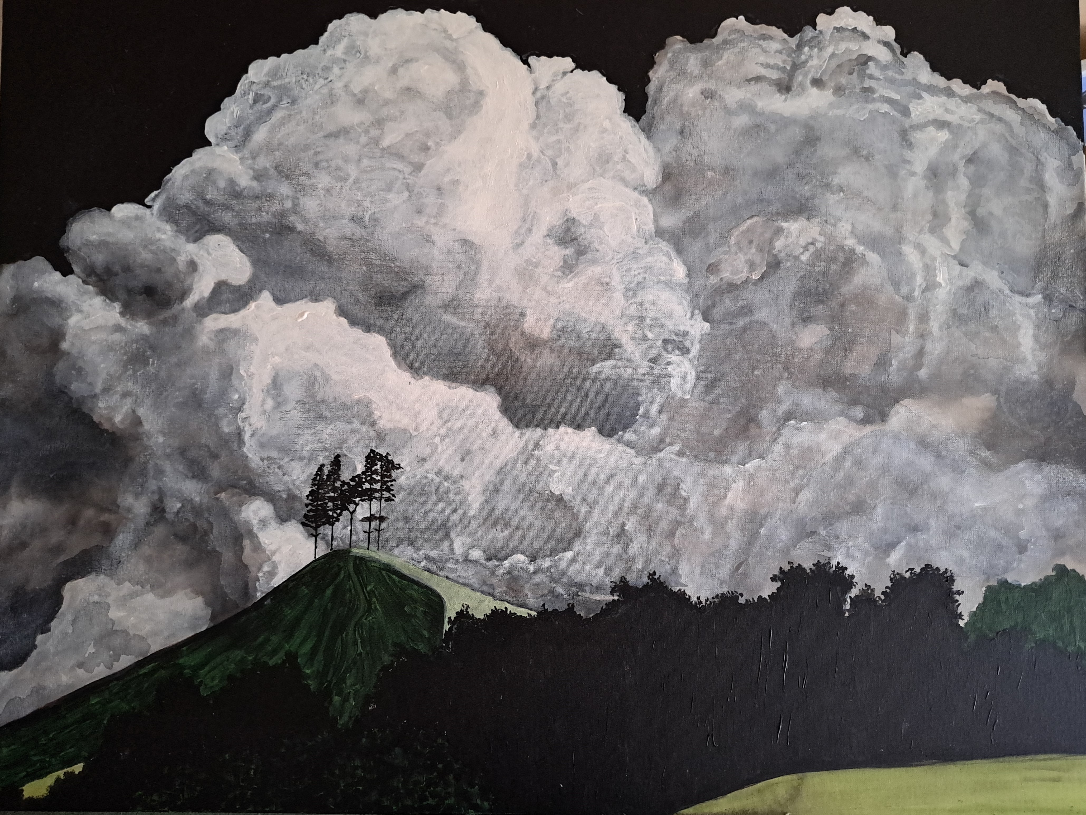 There was a wonderfully sharp photo of these clouds but I found it was too detailed and lacked any artistic form. I found the quicker I painted it the better.