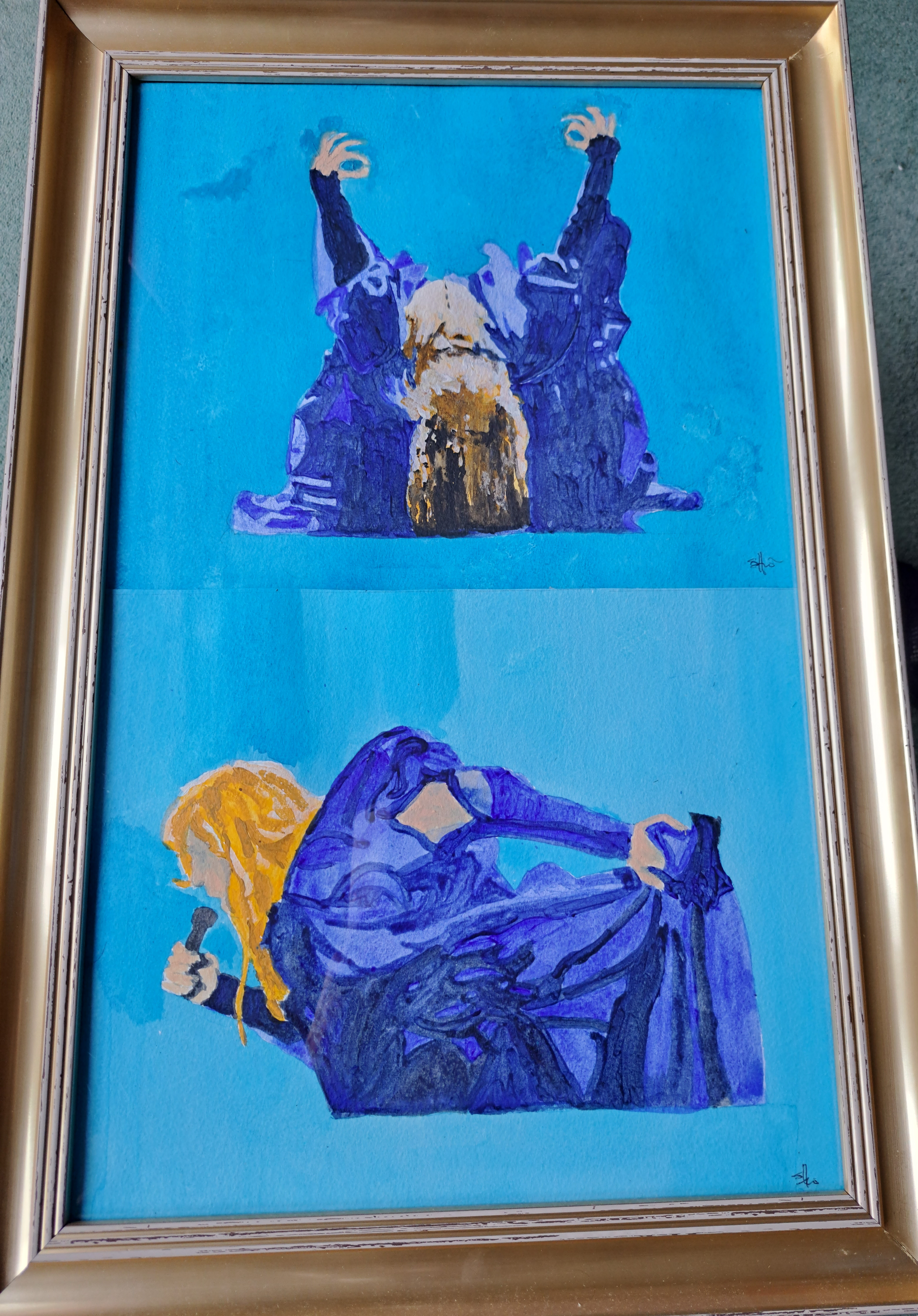 She performs a sort of ballet and arrives at this ugly pose about 2/3 through – like the wicked witch of the north. But after the song dies away she kneels on the stage in this strange elaborate bow – I call the dying blue swan.