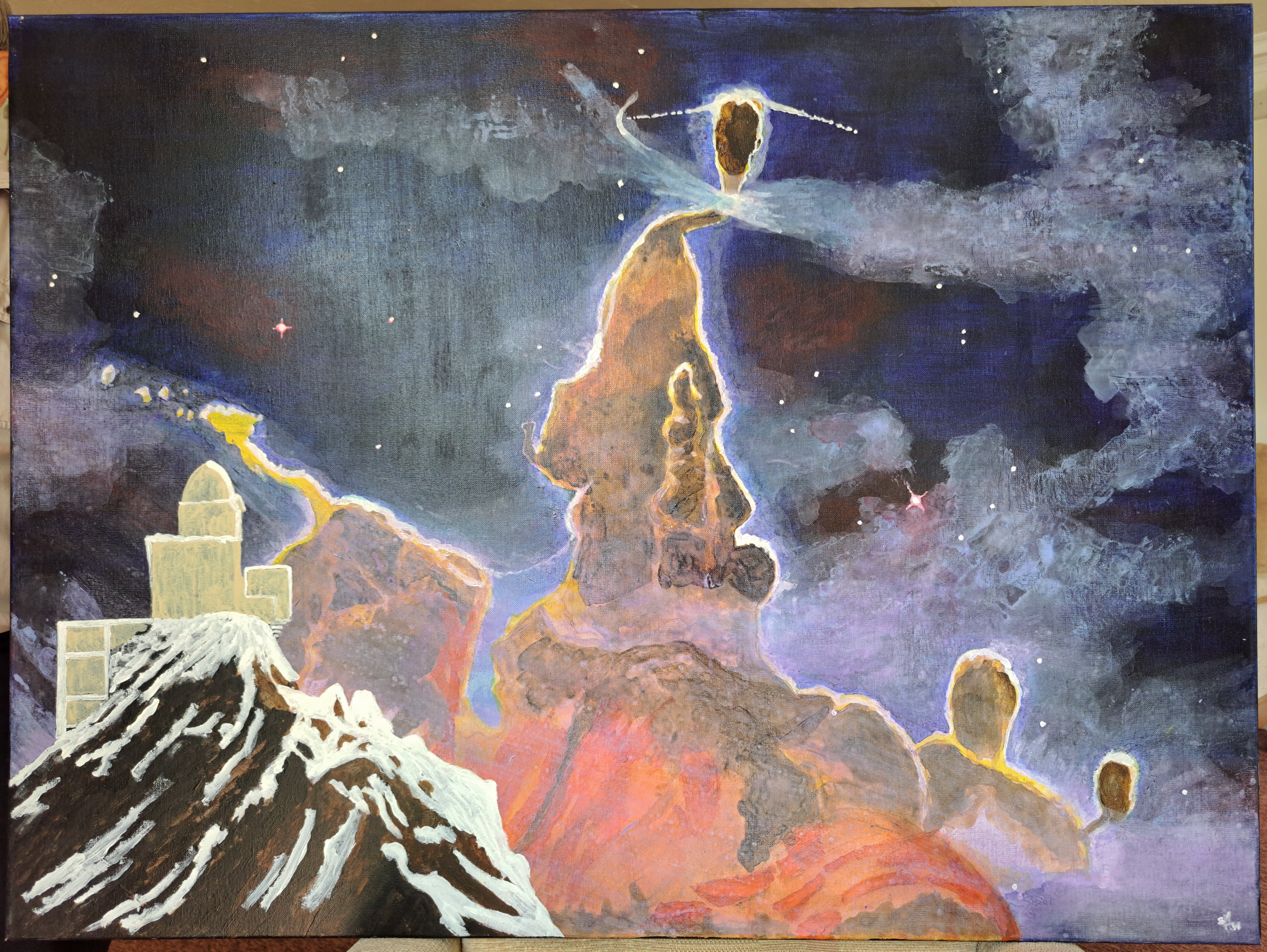 I found a photo of an observatory in Switzerland that I had never heard of, yet I had seen it, and it almost matched the painting, so I revised Mystic Mountain to ground it in reality.