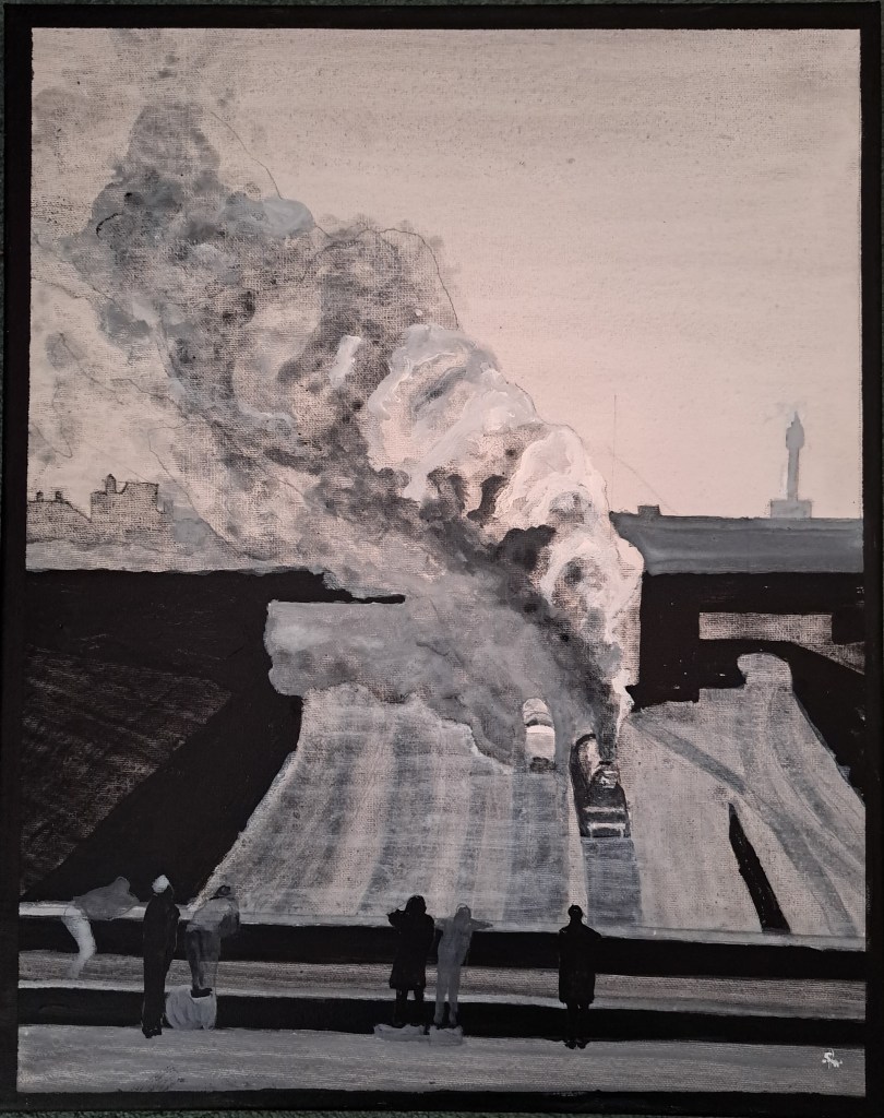 In 1970 Colin T Gifford published the finest of all Railway Photographic Books called EACH A GLIMPSE. He recorded the end of the steam train era. The era of my transpotting youth. It would be impossible to take such photos now. In my dreams I wanted to pay homage. Eventually in 2025, having exhausted many different subjects and lacking inspiration at 82 I stumbled across a photo (not CTG) I just had to paint