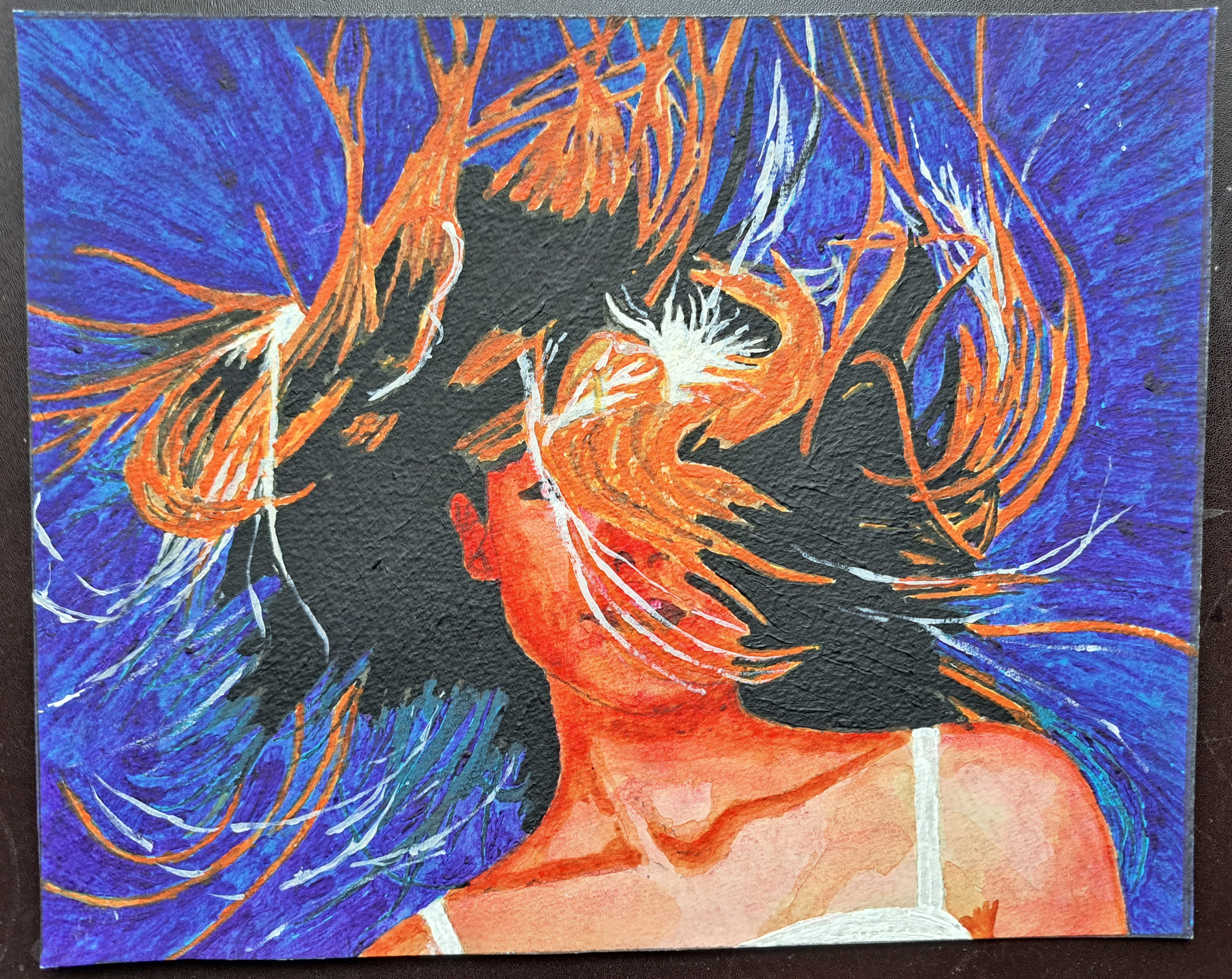 I have tried to paint this several times but cannot achieve the fineness of the hair with the free flowing tangle.